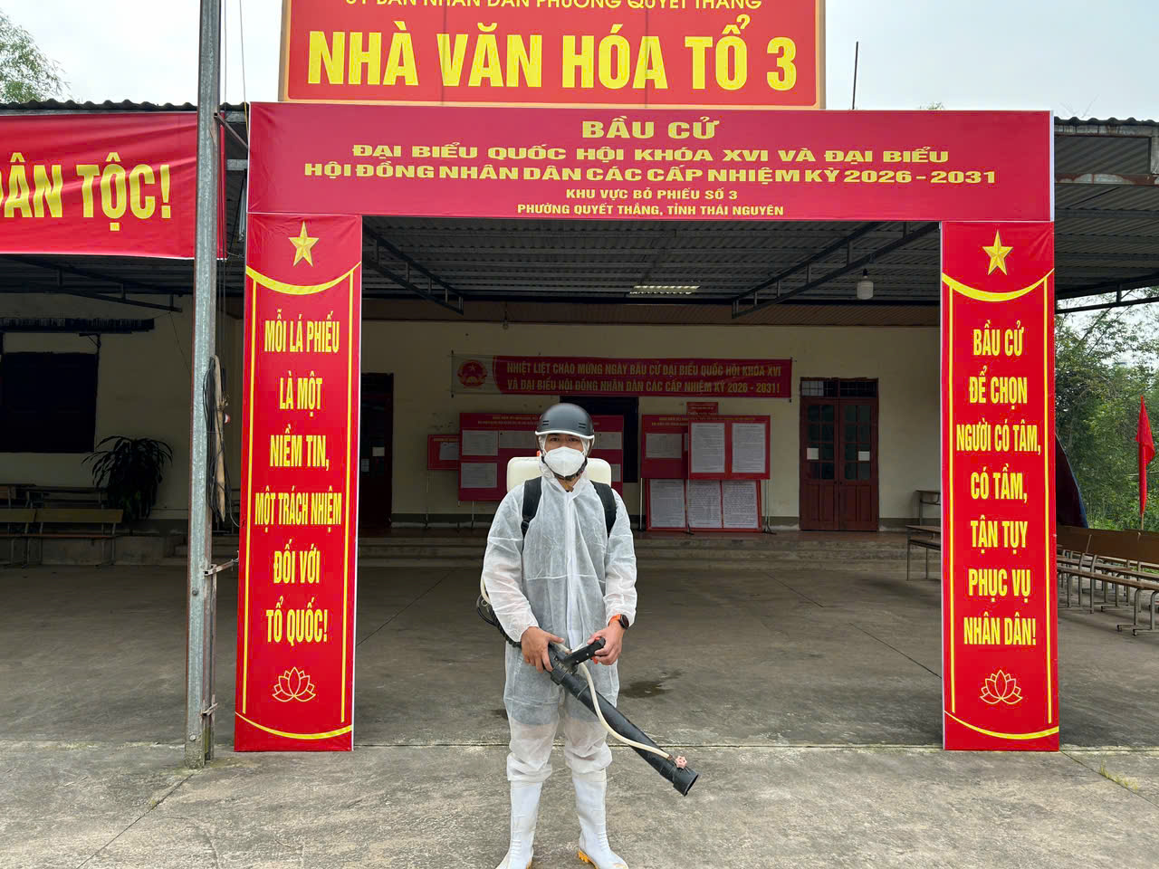Nhằm góp phần bảo đảm công tác phòng chống dịch bệnh, tạo môi trường an toàn cho cử tri tham gia bỏ phiếu, Trạm Y tế phường Quyết Thắng đã tổ chức phun hóa chất khử khuẩn tại 28/28 điểm bầu cử trên địa bàn phường trước ngày diễn ra bầu cử.