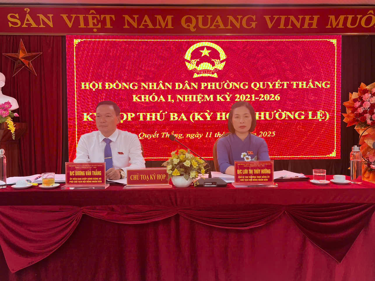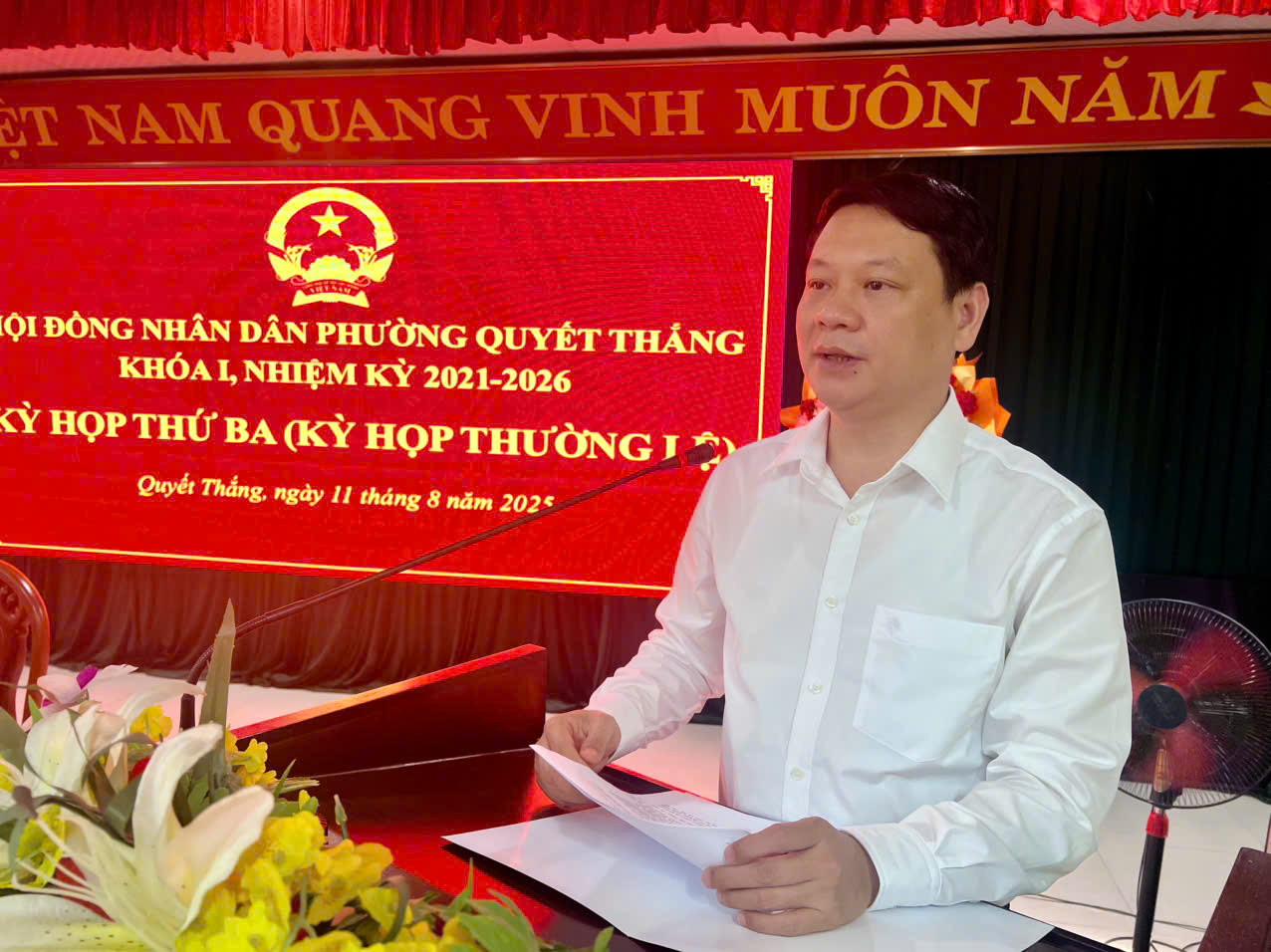 Sáng ngày 11/8/2025, Hội đồng nhân dân phường Quyết Thắng tổ chức kỳ họp thứ Ba, HĐND phường khoá I, nhiệm kỳ 2021-2026. Dự và chỉ đạo kỳ họp có đồng chí Phạm Việt Dũng, Bí thư Đảng uỷ phường. Cùng dự có các đồng chí Thường trực Đảng uỷ; các đồng chí Uỷ viên Ban Thường vụ; Uỷ viên Ban chấp hành Đảng bộ; đại diện Lãnh đạo Ban Xây dựng Đảng, UBKT Đảng uỷ; các đồng chí lãnh đạo HĐND, UBND phường; Thường trực UB MTTQ phường; Trưởng Công an phường; Chỉ huy BCH Quân sự phường; Bí thư Chi bộ; Tổ trưởng tổ dân phố; Trưởng ban công tác mặt trận của 28 tổ dân phố.