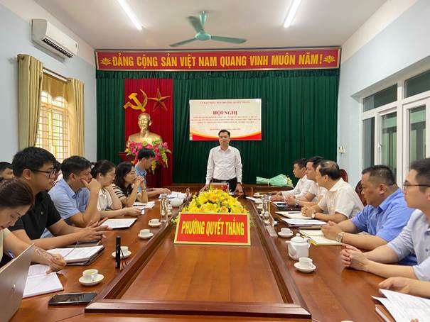 Dự và chủ trì hội nghị có đồng chí: Mai Hải Trung, Phó Bí thư Đảng ủy, Chủ tịch UBND phường; Nguyễn Văn Nam, Phó Chủ tịch UBND; Nguyễn Đức Nhất, Phó Chủ tịch UBND; Trưởng phòng, Phó Trưởng phòng và chuyên viên phòng Kinh tế, Hạ tầng và Đô thị phường phụ trách tham mưu công tác bồi thường, quy hoạch, đầu tư công, phòng chống thiên tai; Lãnh đạo và chuyên viên phòng Văn hóa - Xã hội; Lãnh đạo và chuyên viên Ban Quản lý dự án; Chuyên viên phụ trách dự án Trung tâm Dịch vụ tổng hợp phường.